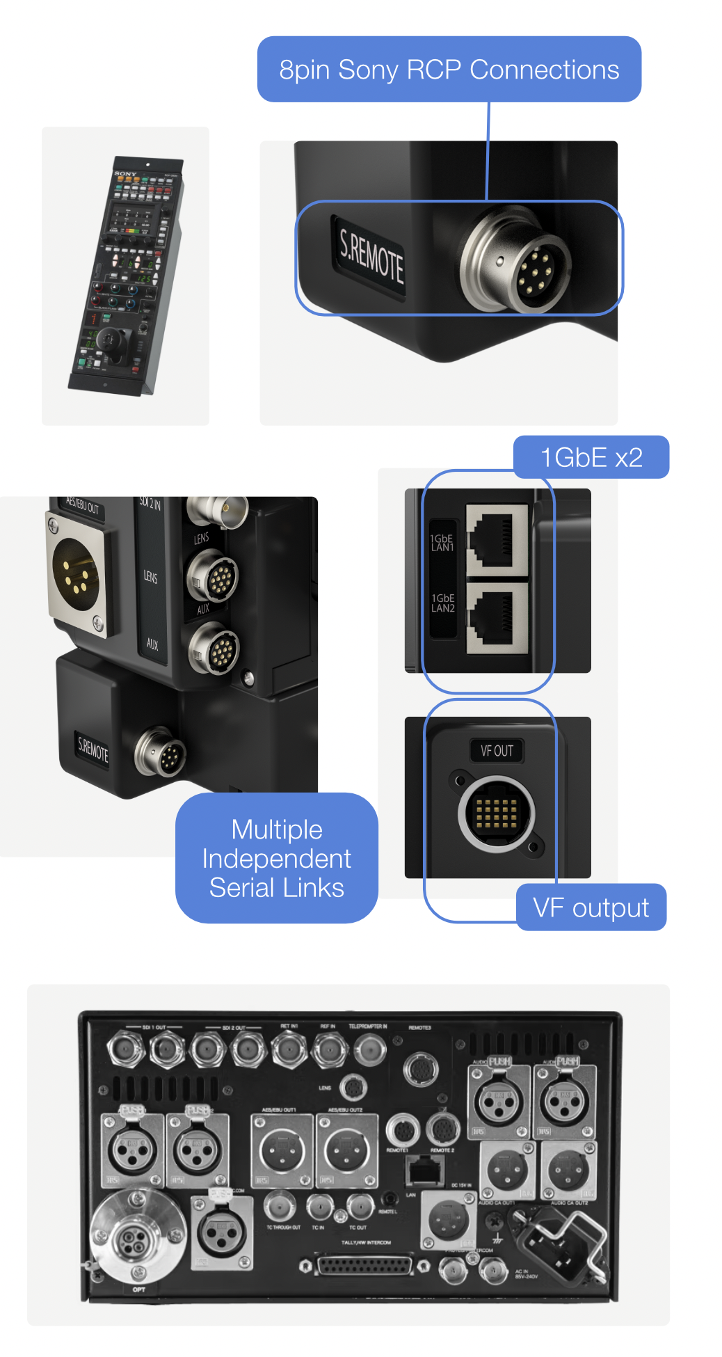 Sony 8p Remote, Serial, 1GbE Switch, Lens + VF