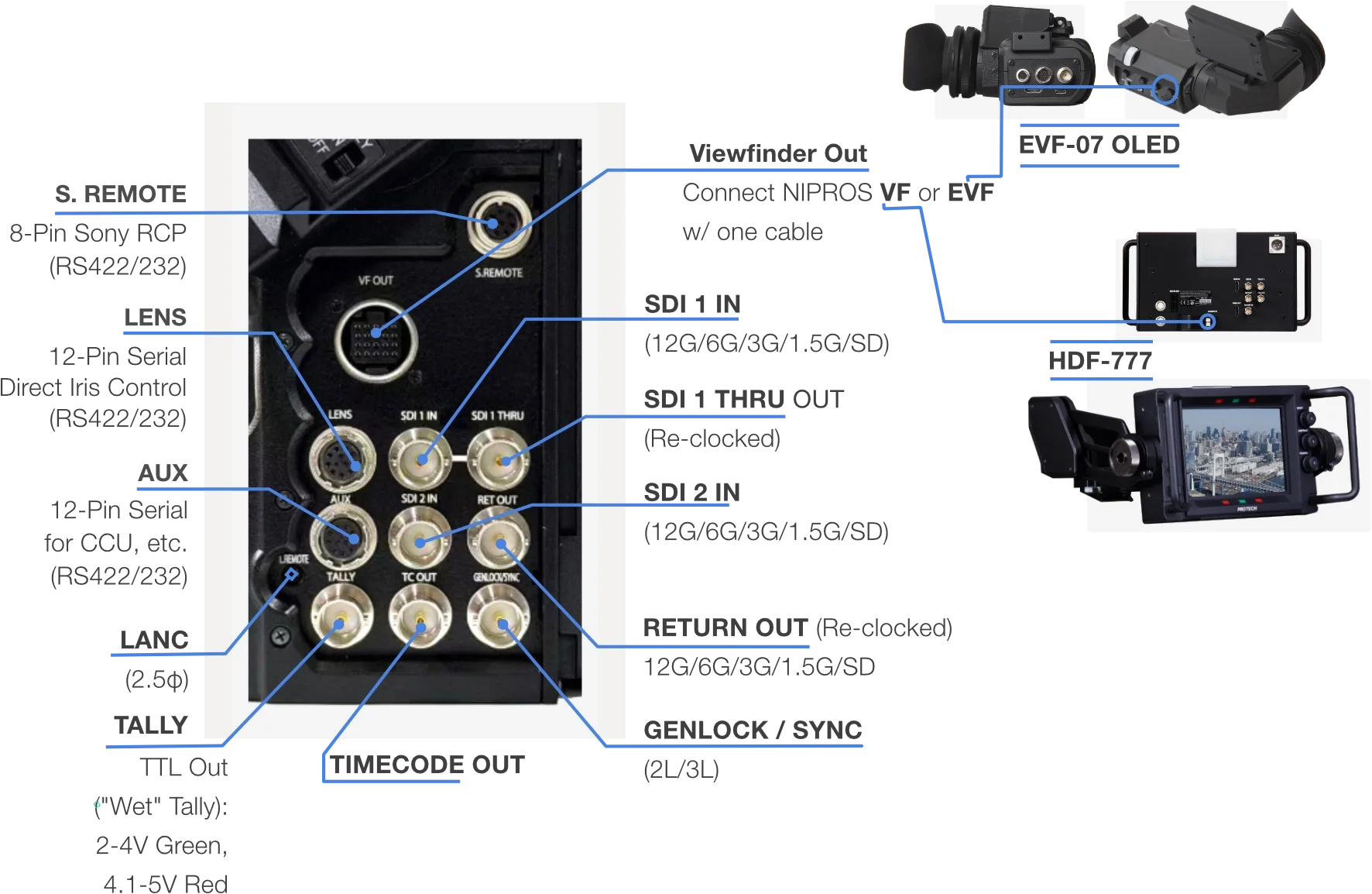 | Sony RCP | 8P Hirose (232/422) | 8P Hirose (232/422) |