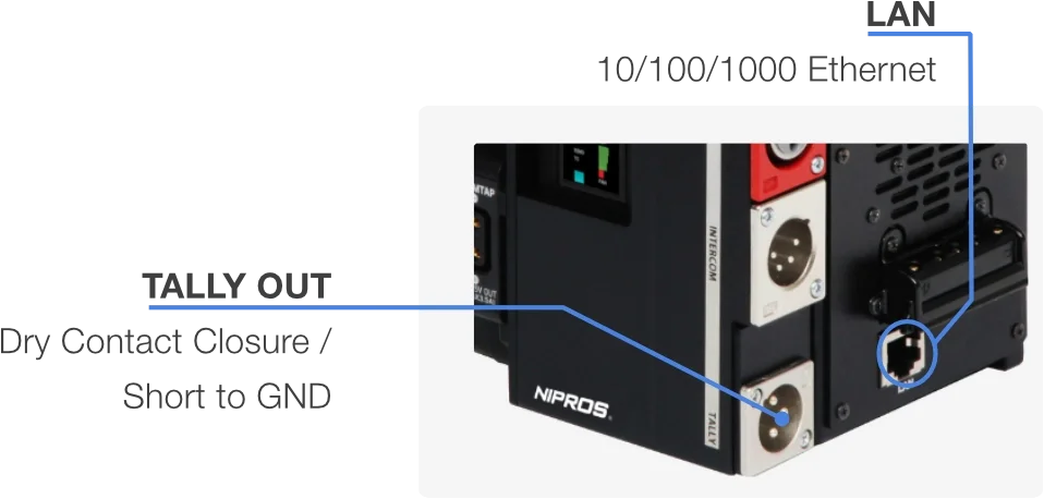 Supports Control of all Camera Systems with native 8P Sony RCP, 12P Serial, LANC (2.5φ), 1GbE RJ45 + Dedicated LENS Iris.